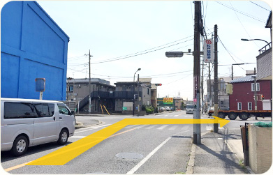 松栄橋(川)を越えたら、川沿いに右折してください。